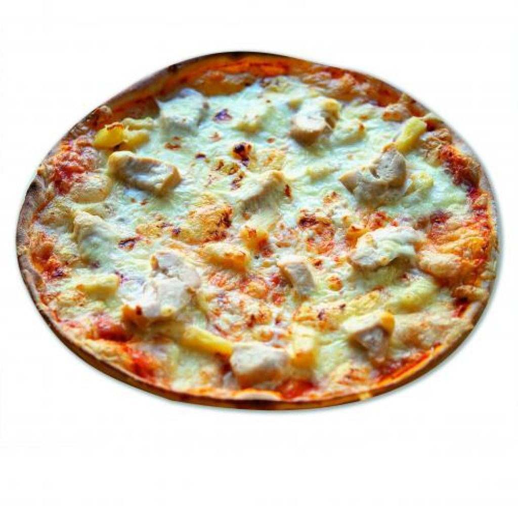 smetana, ananas, kuřecí maso, eidam, oregano, tomat